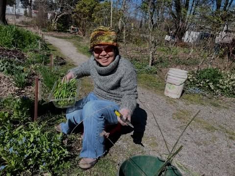 Sunday, March 24: Harvesting overwintered greens, weeding out rooty plants, saying hello to some avian visitors