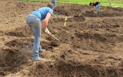We will prepare the ground for soil delivery. We will provide tools but if you have a pair of gardening gloves bring them, and if you have a pick-axe bring it along as we will be breaking up some compacted soil areas.