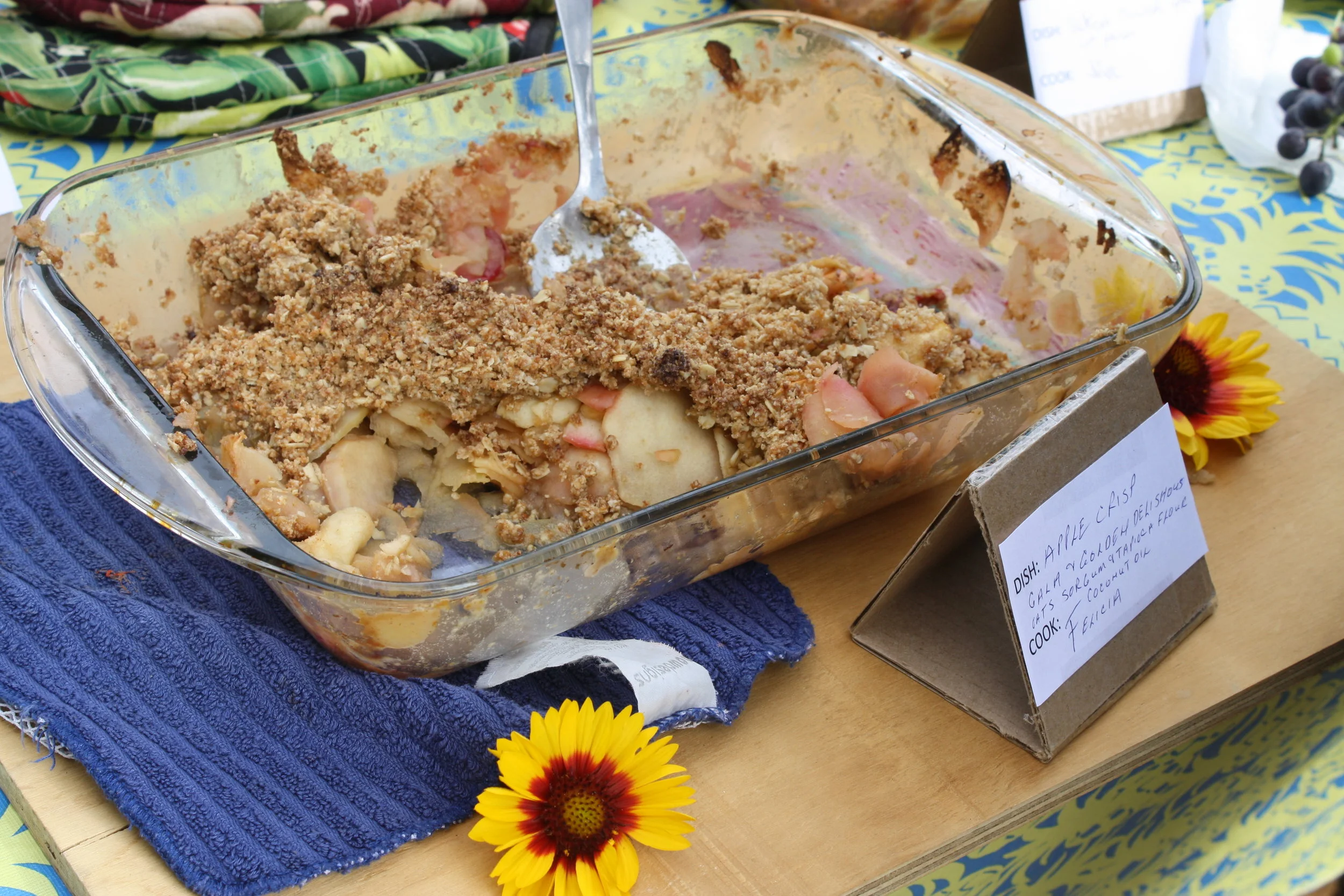 Once the tasting was finished, the apple-themed potluck began! There were several dishes, including two salads, baked apples, homemade pastries, and the contest-winning dish: Felicia's gluten-free apple crisp!
